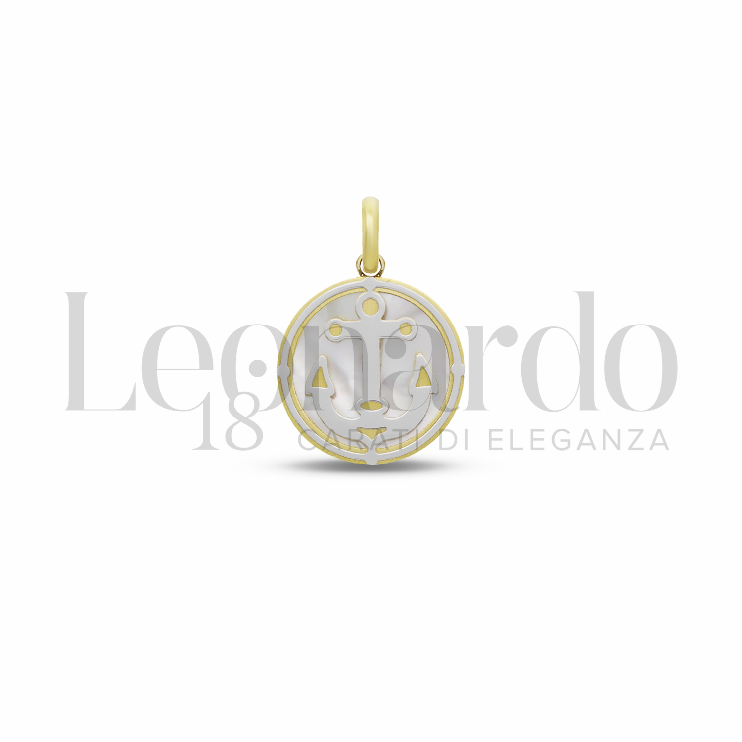 Pendenti da Uomo, con Madreperla e Ancora, 2° misura, finitura Lucida in Oro Bianco e Oro Giallo.