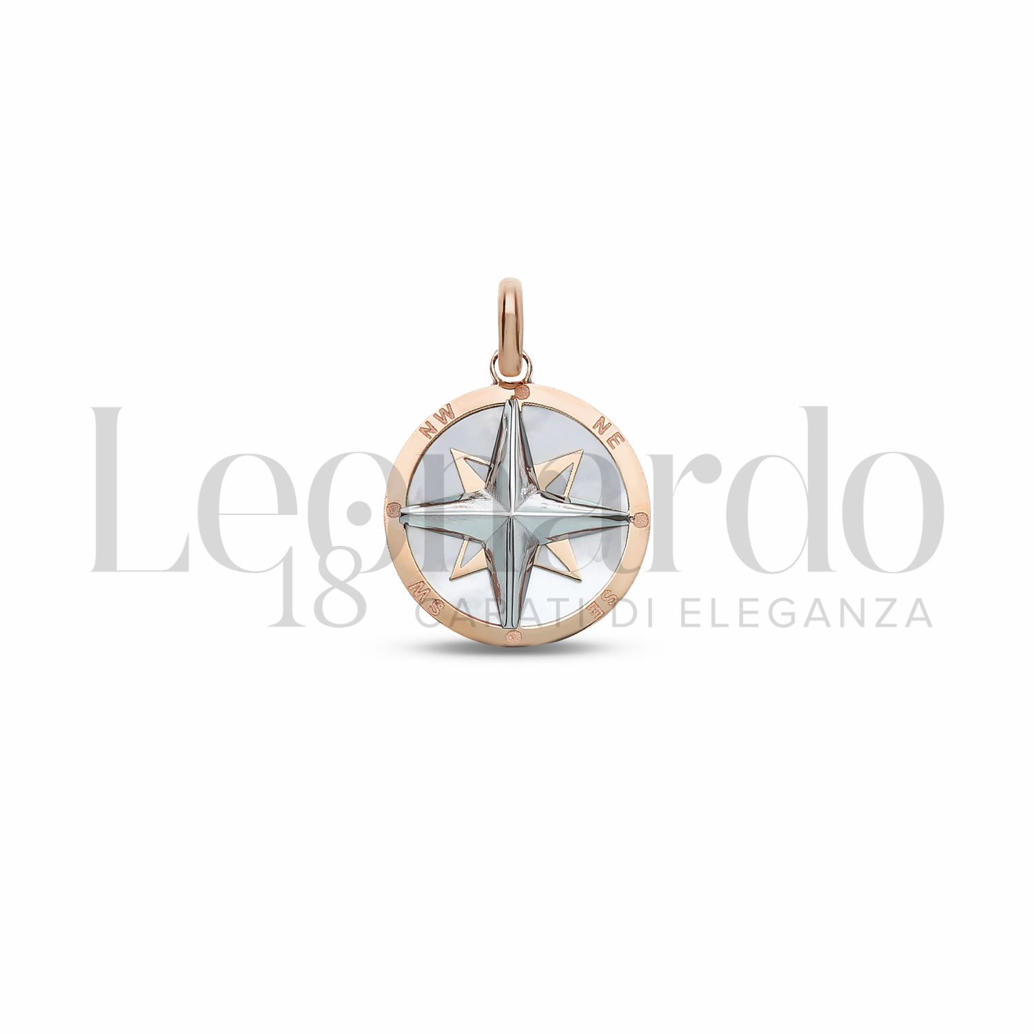 Pendente da Uomo, con rosa dei venti e madreperla, 2° misura, in Bianco e Oro Rosa.