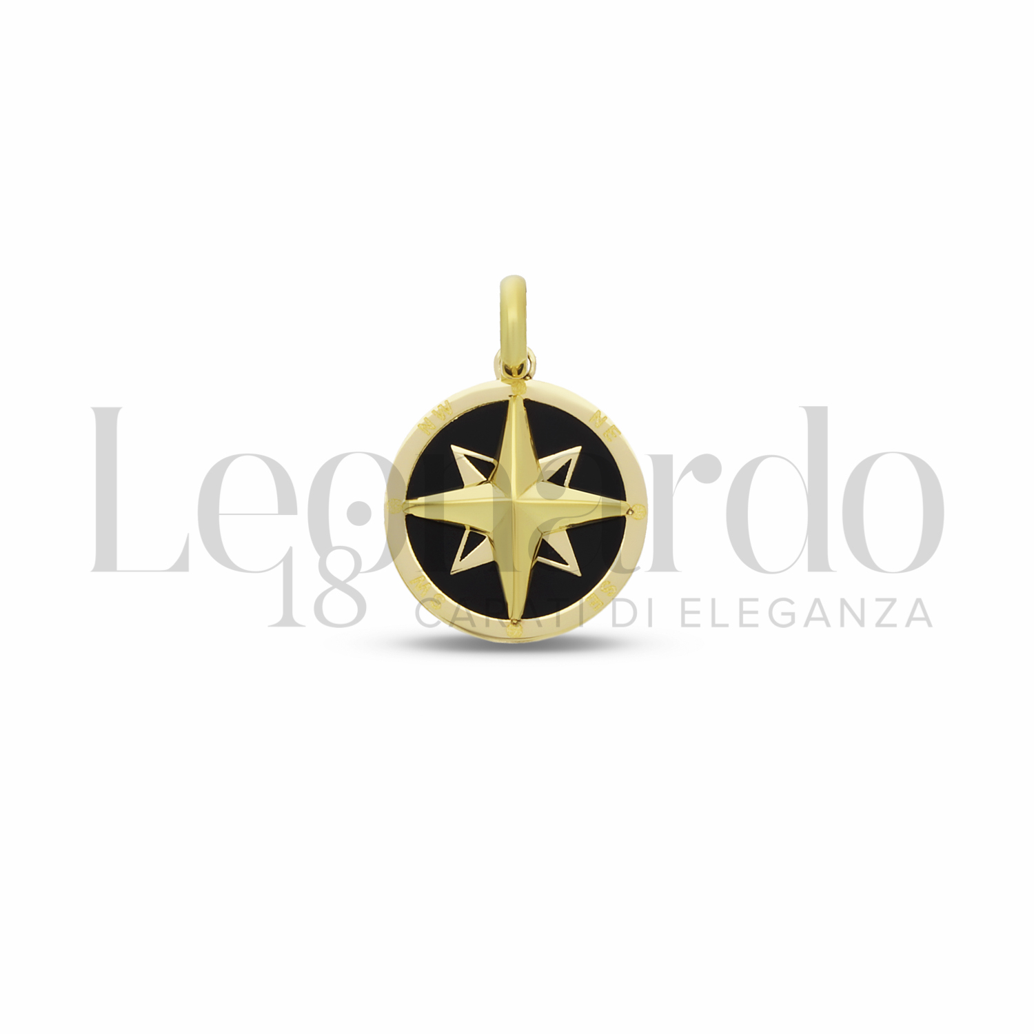 Pendente da Uomo, con Rosa dei Venti e Onice, 2° misura, in Oro Giallo.