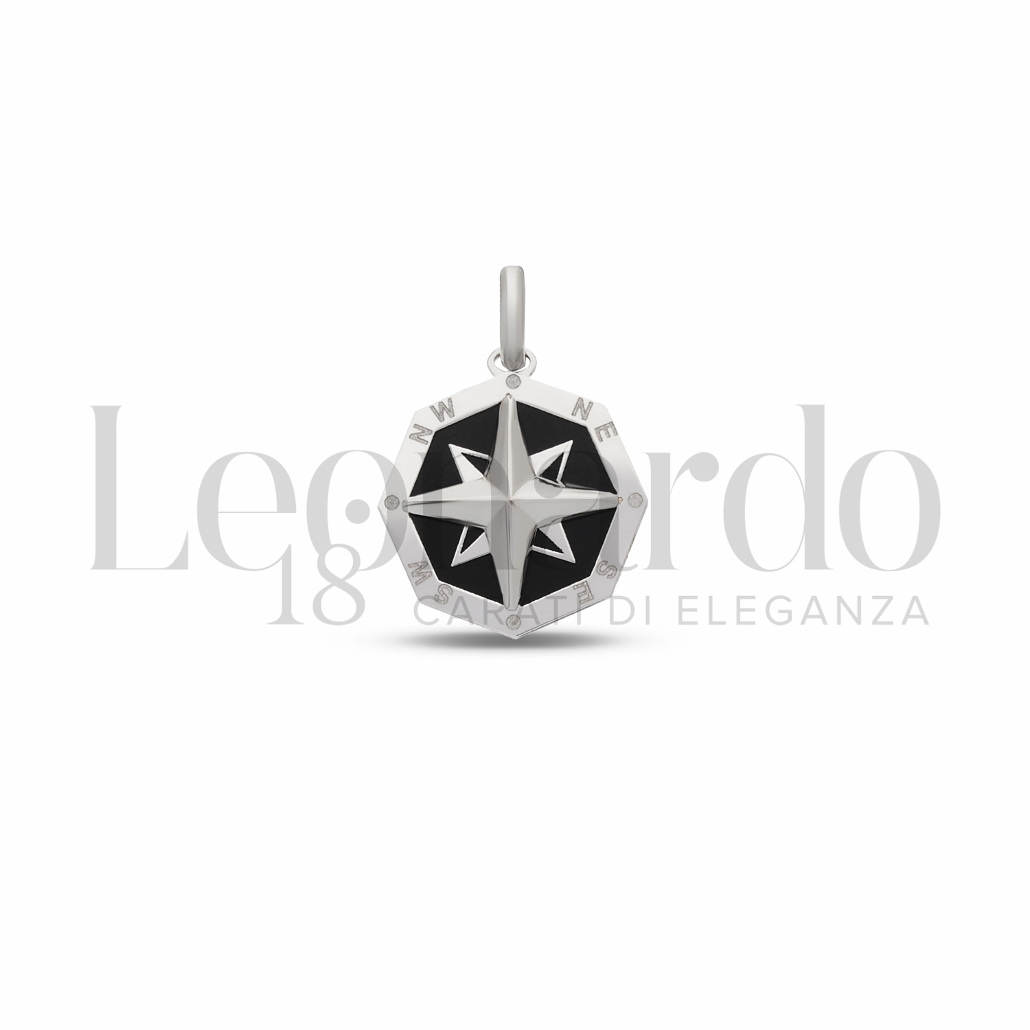 Pendente da Uomo, con Rosa dei Venti e Onice, 2° misura, in Oro Bianco.