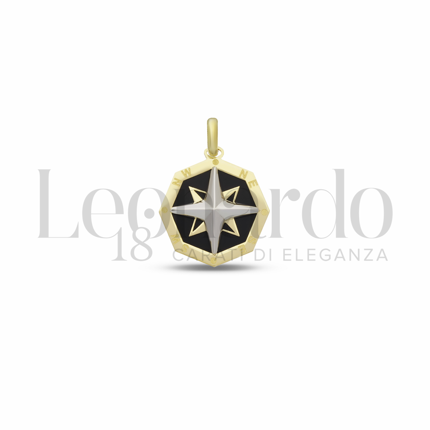 Pendente da Uomo, con Rosa dei Venti e Onice, 2° misura, in Oro Giallo e Oro Bianco.