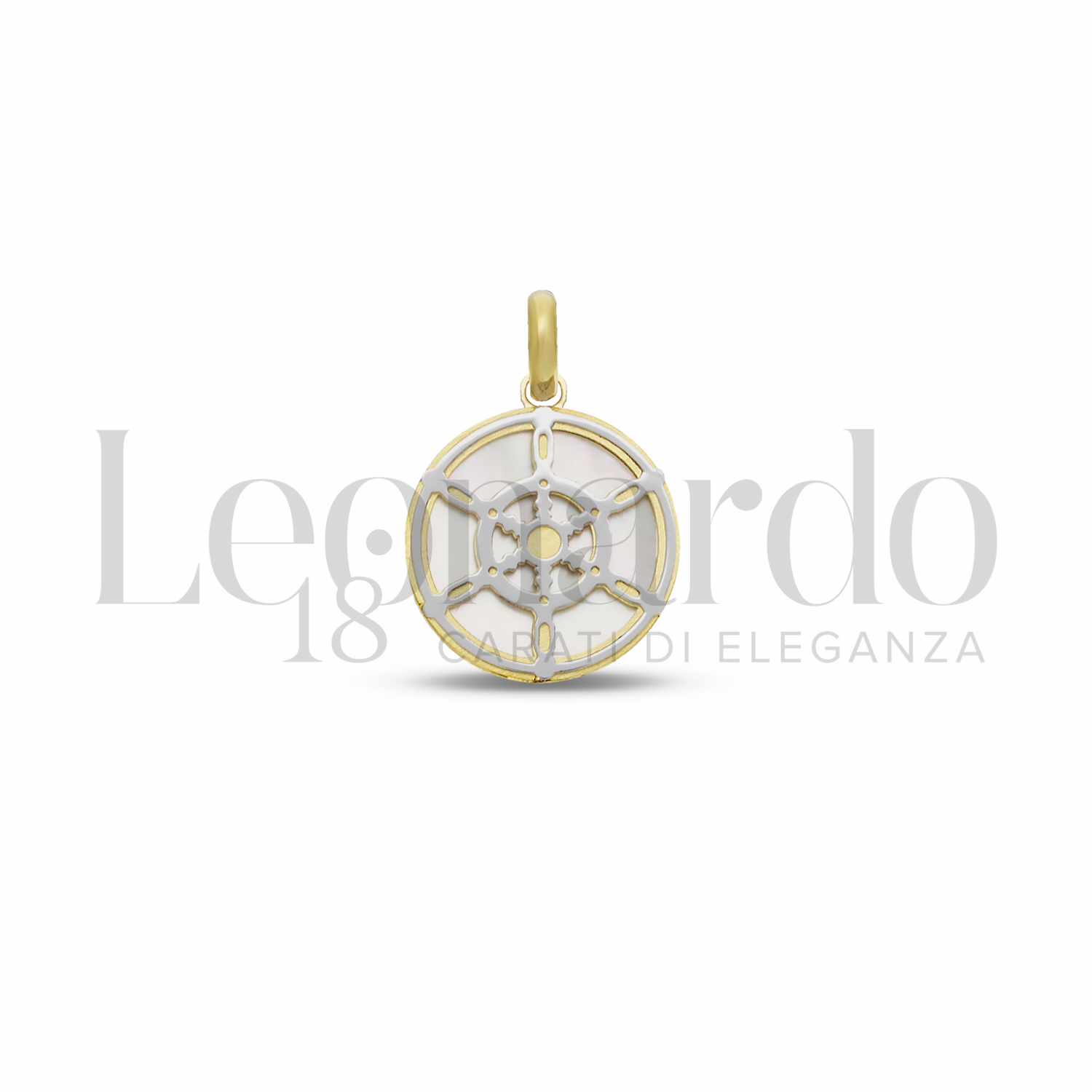 Pendente da Uomo, con Timone e Madreperla, 2° misura, finitura Lucida in Oro Giallo e Oro Bianco.