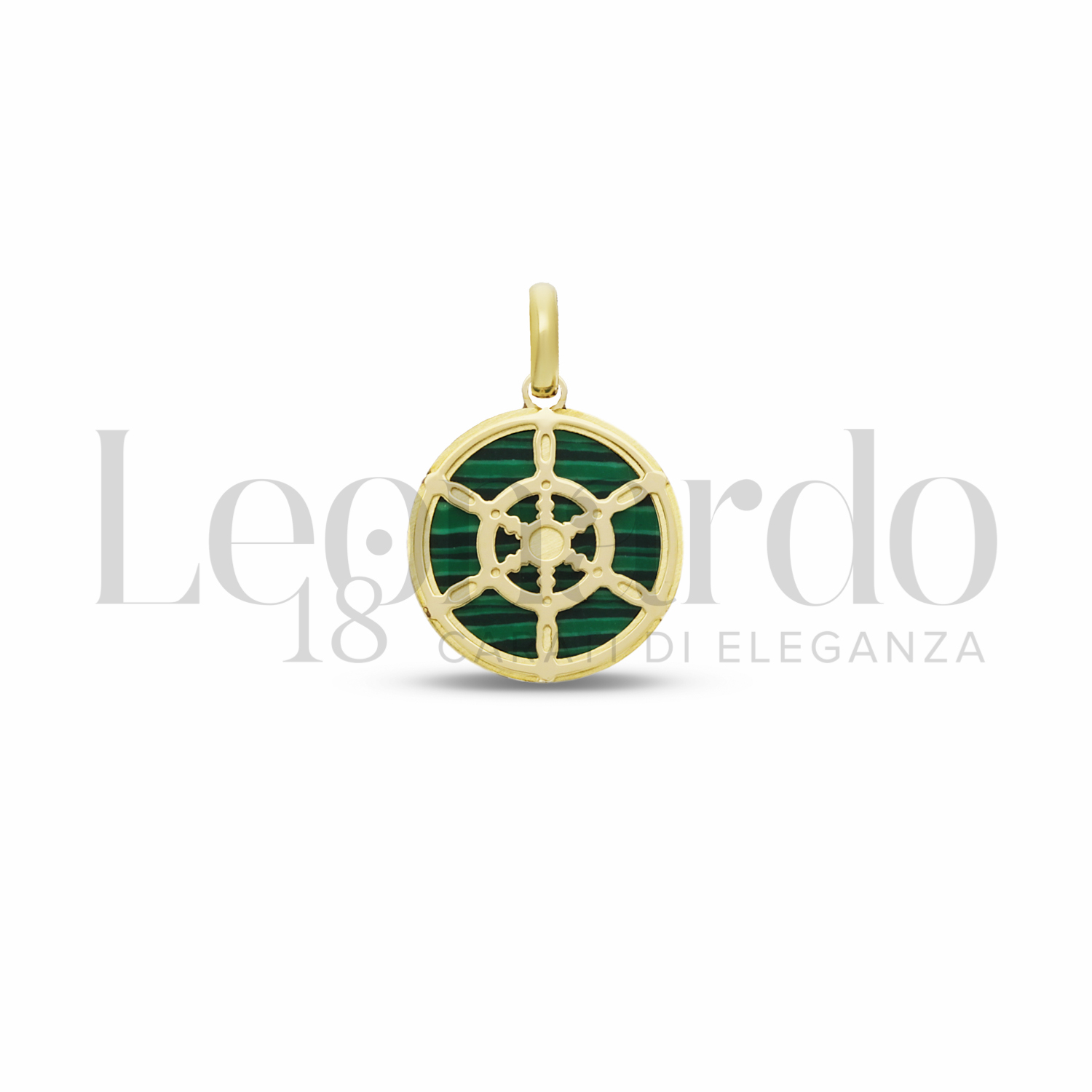Pendente da Uomo, con Timone e Malachite, 2° misura, finitura Lucida in Oro Giallo.