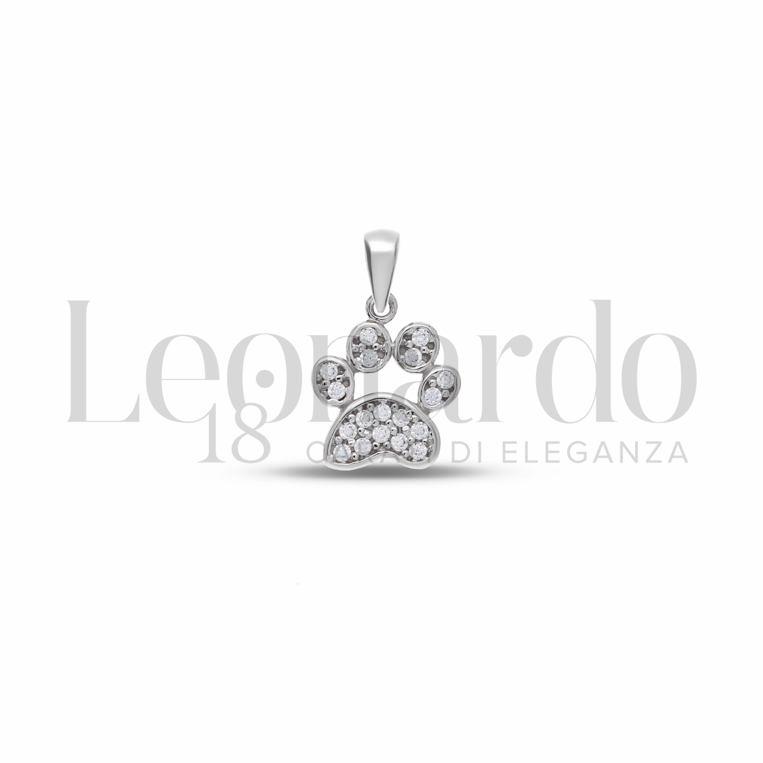 Pendente da Donna, a forma di Zampa, con Pavè di Zirconi Bianchi,1° misura, finitura lucida in Oro Bianco.