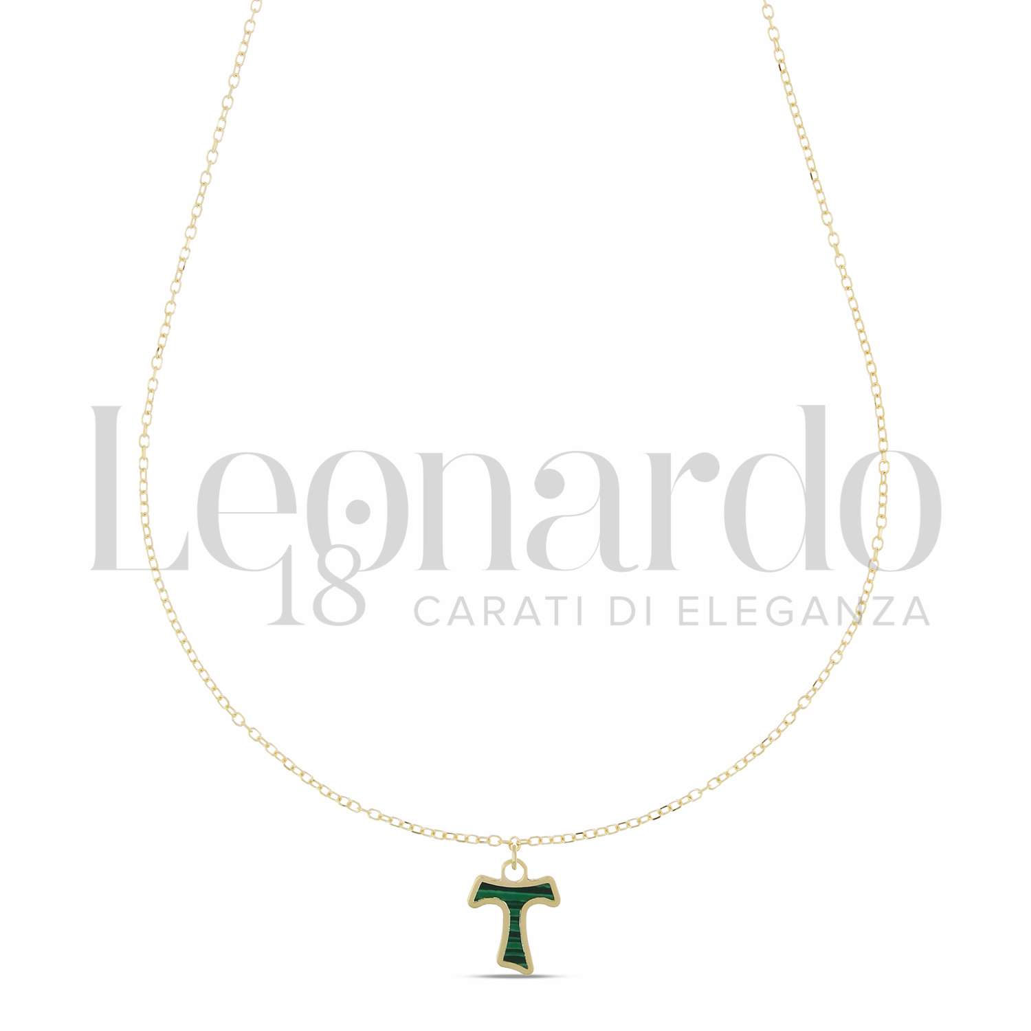 Tau da Uomo, con Catenina Passante, 1° misura, con Malachite, finitura Lucida, in Oro Giallo.