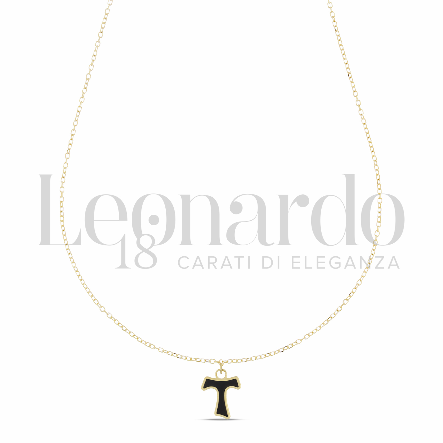 Tau da Uomo, con Catenina Passante, 1° misura, con Onice , finitura Lucida, in Oro Giallo.
