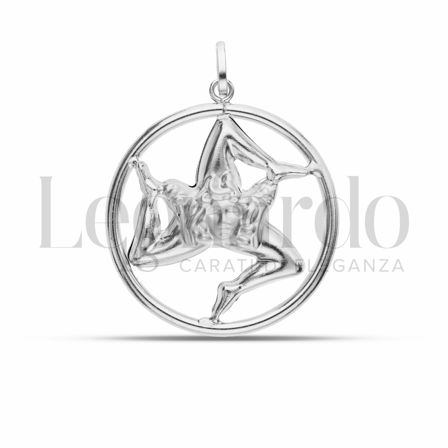 Pendente Trinacria, modello scatolato con bordo, finitura lucida e satinata, in Oro Bianco.